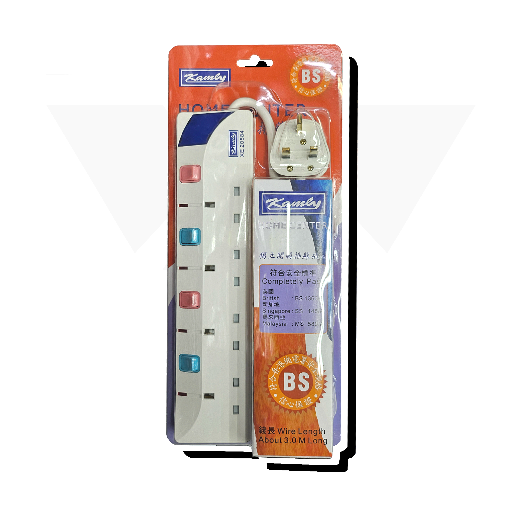 "KAMLY" 金利 3米線 獨立燈掣拖板 "KAMLY" 3M Long Cable Extension Socket with Independent Switch