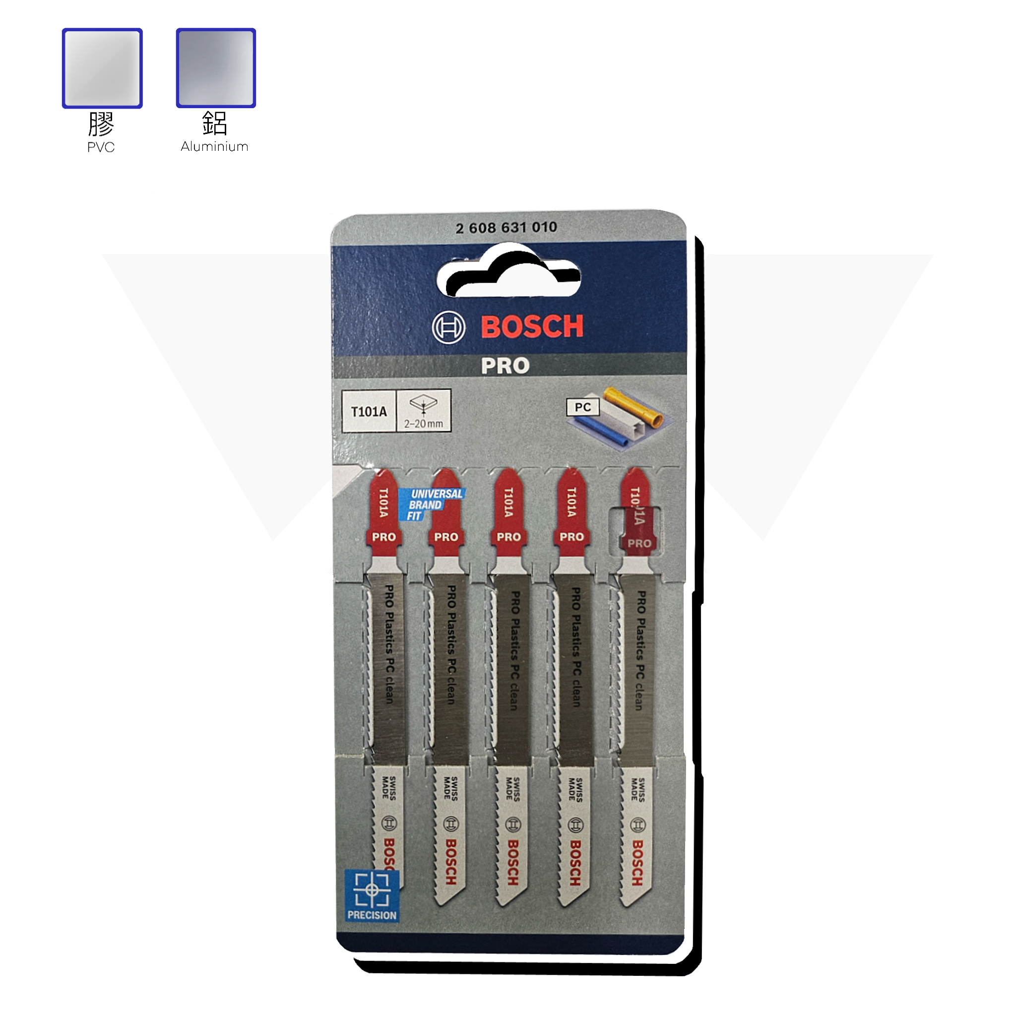 德國 "BOSCH" 博世 T101A 5片裝 PC細緻切割款 積梳鋸片 (介鋁&膠用) "BOSCH" (GER) 5pcs HSS Clean for PC Jigsaw Blade